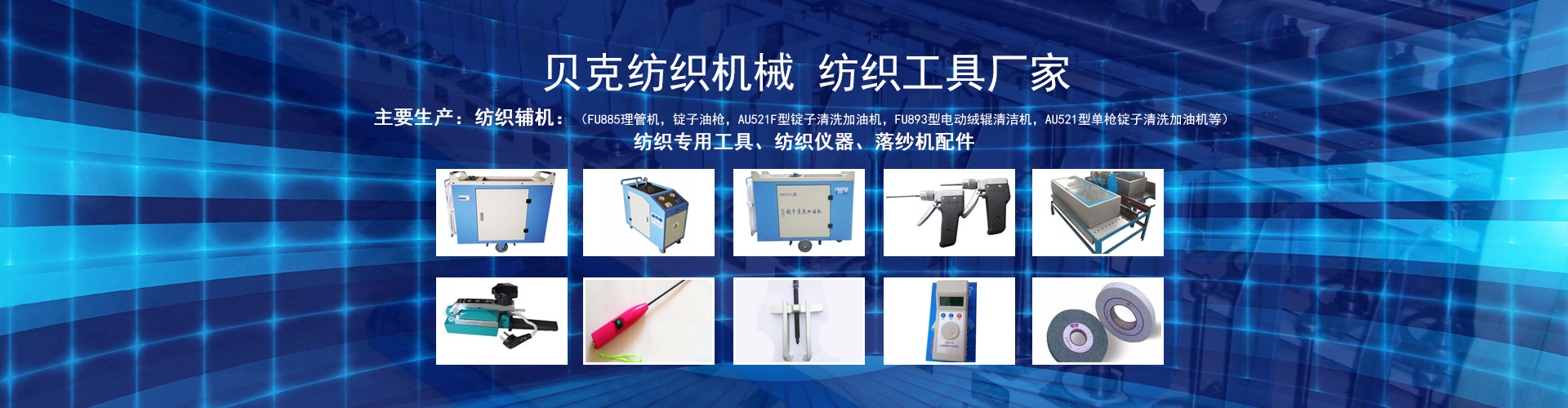 安徽貝克紡織機械設(shè)備有限公司座落于皖東天長市東郊S312省道109km仁和段,毗鄰江蘇南京、揚州、水陸交通十分便利,環(huán)境優(yōu)美。 公司是主要產(chǎn)品有:紡織專用工具(前紡、后紡保全、保養(yǎng)、平車、全套專用工具和通用工具),皮輥房系列(皮輥磨床、壓圓機、套皮輥機、皮輥切割機有機械式和液壓式兩種供選擇),梳棉輔助機械(刺輥包磨機、清刷蓋板機、金屬鋸條倒料機蓋板踵趾面銑削機、包針布慢速傳動裝置 ……